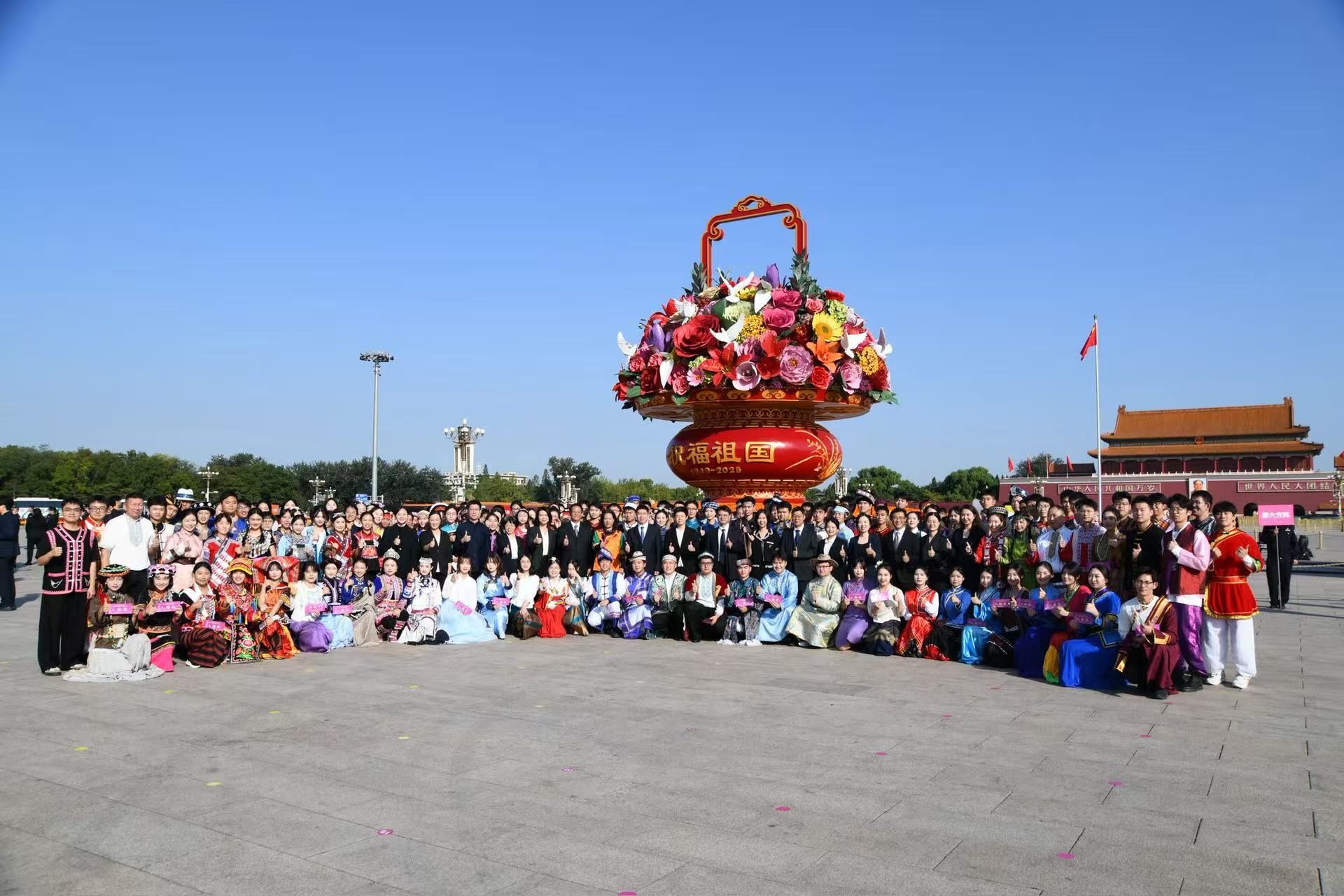 仪式后,师生代表在天安门广场合影