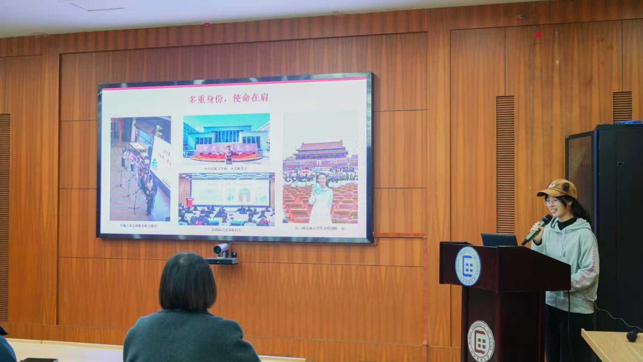 在“共话九三阅兵,同创强国未来”主题分享活动环节。参与九三阅兵的志愿者吴怡萱和翁婉姣同学,以亲身经历讲述阅兵筹备过程中的艰辛与感动,分享见证祖国庄严时刻时的自豪与震撼。志愿者的动情讲述,让在场港澳台学生深刻感受到祖国的繁荣强大,不少人热泪盈眶。