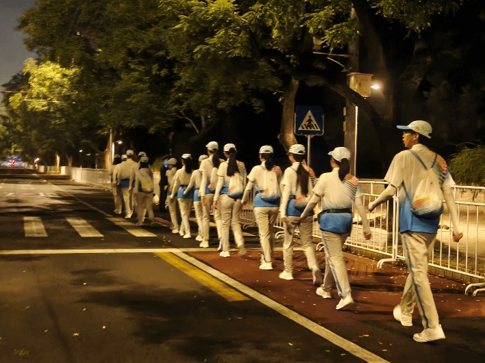 作为景山西街停车场引导岗志愿者,虽然没能亲眼见到主会场的盛况,但岗前学校组织的系统培训、上岗前的实战演练、17个小时的持续服务,都让我深刻体会到“平凡岗位亦有使命”。体能训练时坚持长跑,礼仪培训中反复练习的微笑弧度,现场演练时熟记于心的路线图,都是为了以更好的姿态服务这场盛会。当第一辆保障车缓缓驶入,我抬手、指引,动作中不自觉带着站军姿时的影子。我坚信:青春的重量,从来都藏在‘认真对待每一件小事’之中,使命也在这样的坚守中悄然传承。